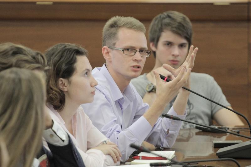 Voronezh State University has a student research society. This organisation is aimed at collaboration between students that will promote scientific ideas and advance the development of students. Students of the Faculty of Physics represented Russia this year at the International Physicists' Tournament in Paris and took the third place. A master’s student from the Faculty of Physics Sergei Voischev told the guests about this experience: ‘At the tournament we had a battle with a team from Nottingham. And it was not an easy battle’. He also asked the guests about research societies in British universities.