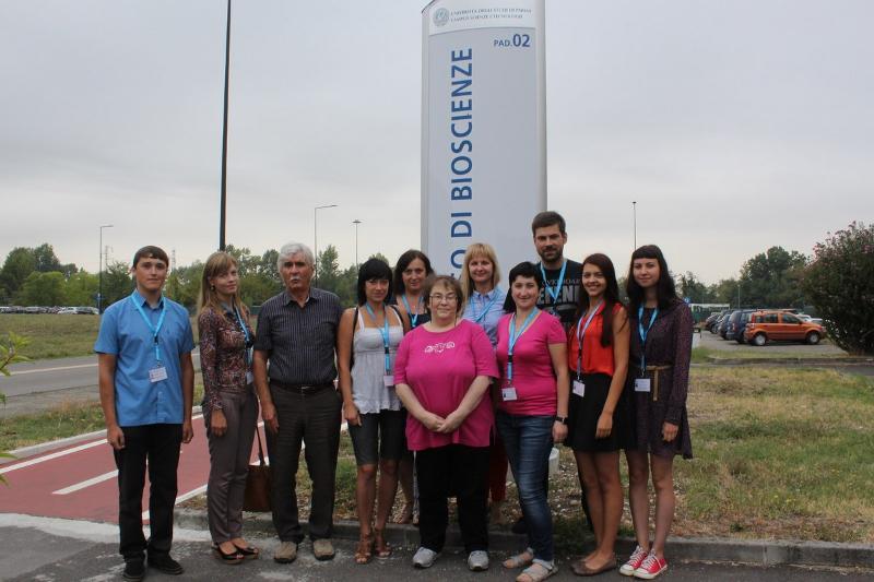In August and September 2016, Lyudmila Sereda, Olga Yakimenko and Evgeniya Mazurova, postgraduate students from the Faculty of Geography, Geoecology, and Tourism, took part in a training course at the University of Parma in Italy, within the TEMPUS project “The Protection of Population Living in Radiation-Contaminated Territories (environment, quality of food, public health, and society)” (530644-TEMPUS-1-2012-HUMANSECURITY). The course was supervised by professor Elena Maestri from the University of Parma.