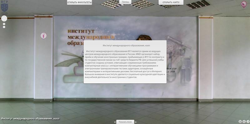 The virtual tour of VSU, with its 157 panoramic images and 66 information points, is one of the largest 3D tours of an education institution in Russia.