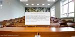 The tour not only shows how the university looks like both inside and out, but also presents some information about each location. The information points are marked with the i icon that you need to click to see the information box.