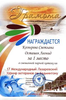 Between 3 and 8 October, Svetlana Kozyreva, a senior instructor of the Department of Physical Education and Sports, participated in the 17th International Lazarev Badminton Tournament for Veterans and won gold medals in two categories – doubles and mixed doubles.