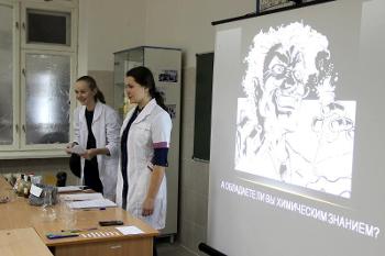 The pupils of the 7–11 grades took part in a quest called “X files” which allowed them to learn more about chemical material science. They also listened to popular science stories and participated in chemical quizzes “Svoja Igra” (an adaptation of"Jeopardy") and “Young alchemist” which had been prepared by undergraduate and postgraduate students and lecturers of the Faculty of Chemistry. The event also included a round table discussion during which school teachers shared their experience and discussed issues related to the State Exam in Chemistry with the dean and academic staff of the Faculty of Chemistry.