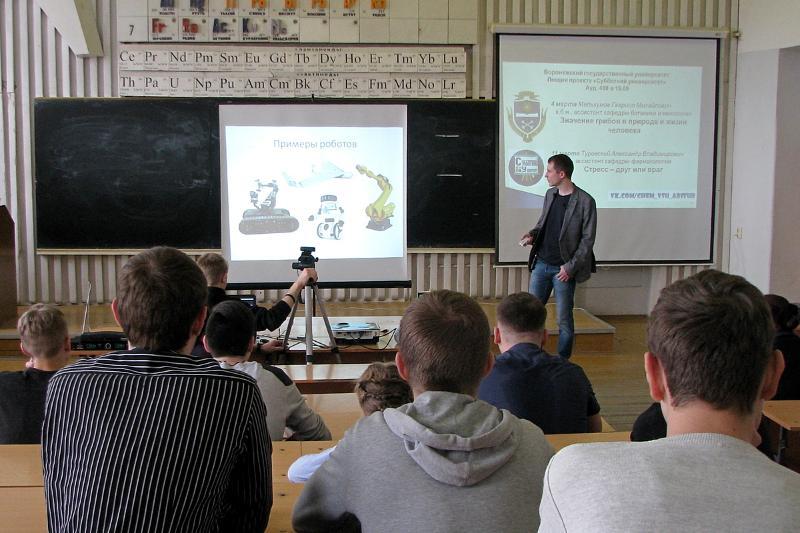 On 25 February, yet another meeting within the “Saturday University” project was held at VSU. This time the topic was robotics. Mikhail Shiryaev, lecturer at the Department of Software Development and Information Systems Administration of the Faculty of Applied Mathematics, Informatics, and Mechanics, told the guests about the process of making robots.