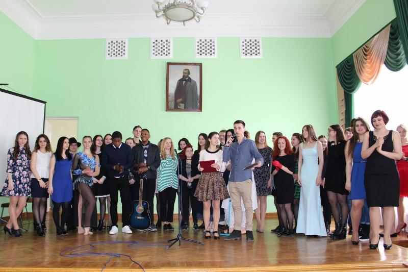 The programme of the contest included 32 performances. The winners were chosen in the following nominations: "Song in the French language", "Poem in the French language", "Sketch in the French language", and "Dance to French music". The performances were evaluated by the jury which was comprised of lecturers from Voronezh universities. As usual, the contest was held in French. The atmosphere was lively and festive thanks to the wonderful hosts: a student from the Faculty of Romance and Germanic Philology, Arina Zhukova, and an intern from France, Alexandre Gerbault. The French intern highly praised the performances, the pronunciation of the Voronezh students and also admitted that he was really amazed by the warm atmosphere, and the interest and friendliness of the audience.