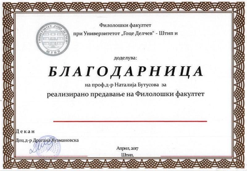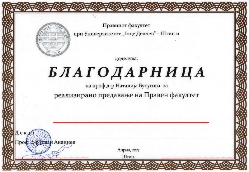 Between 26 and 28 April, Natalya Butusova, professor at the Faculty of Law and the coordinator of the partnership agreement between VSU and the Goce Delcev University (Macedonia), participated in a meeting of a research team of the Faculty of Law of the Goce Delcev University. The meeting discussed issues concerning joint research project on the comparative study of legal and political culture problems.