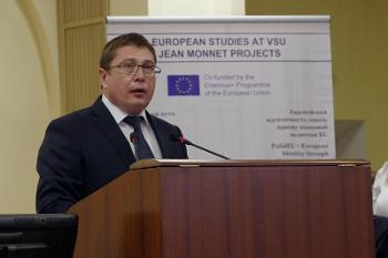 On 18 May, the second day of the international forum "European Higher Education Area: Ways of Development”, the president of the Association of European Studies, director of the Institute of Europe of the Russian Academy of Sciences, Associate Member of the Russian Academy of Sciences, and an expert in European studies and international relations, Alexey Gromyko, was awarded with the title of the Honorary Doctor of Voronezh State University.