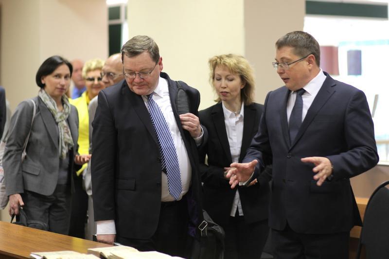 On 7 June, Ambassador Extraordinary and Plenipotentiary of Ireland to the Russian Federation, his Excellency Adrian McDaid, visited Voronezh State University. Among the participants of the visit were employees of the Voronezh Region Economic Development Department and Voronezh representative regional office of the Ministry of Foreign Affairs of the Russian Federation. The programme started with the visit to the VSU’s Book Museum, where the guests had a chance to see unique publications dedicated to Irish studies.