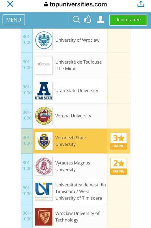 The results of one of the most widely recognized global university rankings by the British company QS (Quacquarelli Symonds) have been published. Voronezh State University is again among the top 1,000 best universities in the world. According to the results of QS World University Rankings 2017, VSU is 801-1,000 among the best world universities and 22nd out of 24 Russian universities.