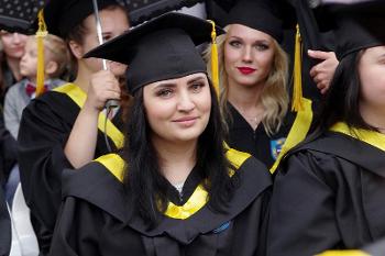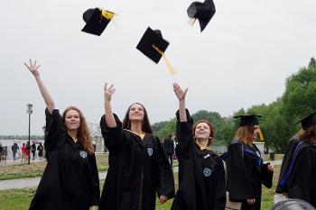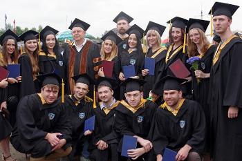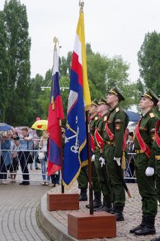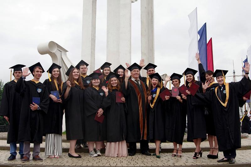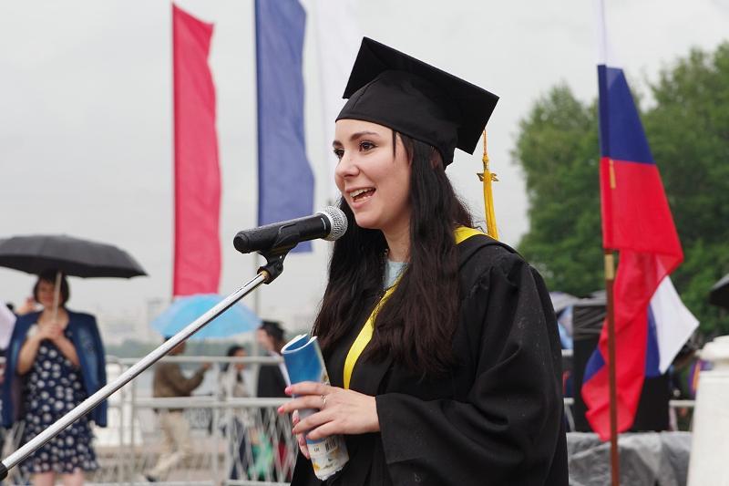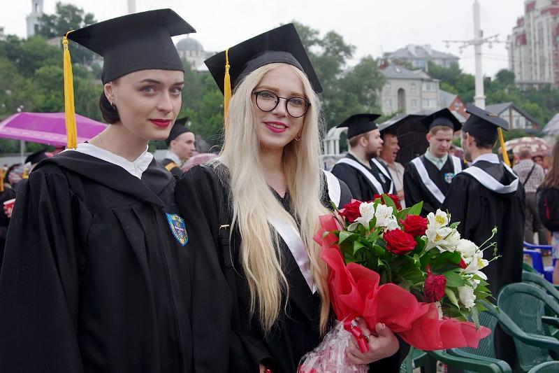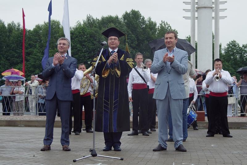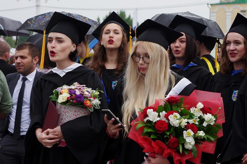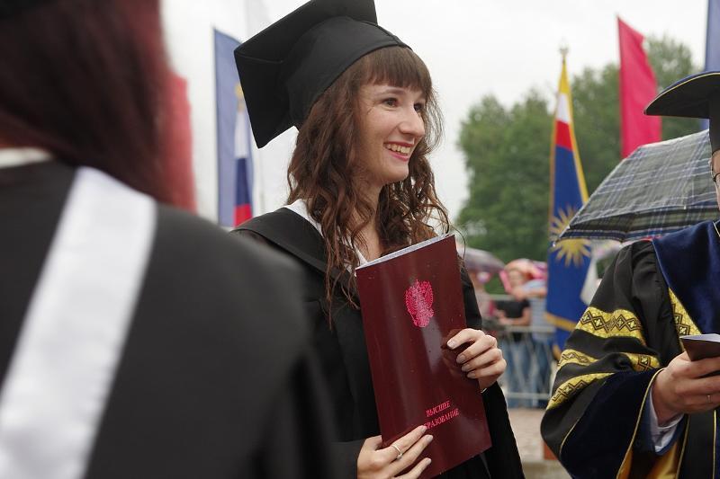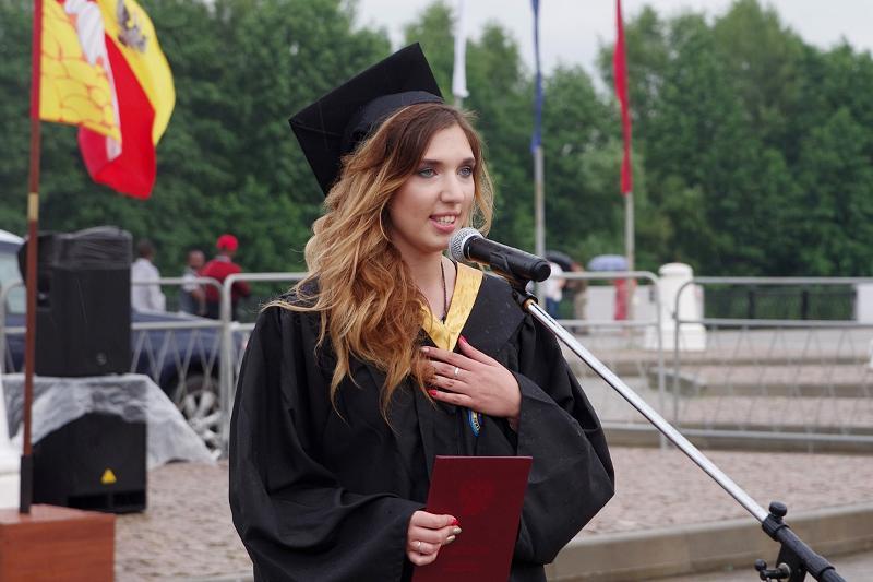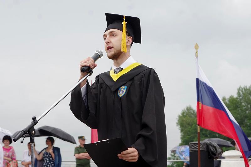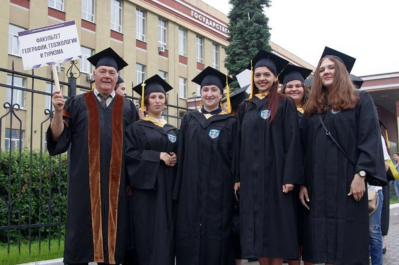 The column of graduates of master’s degree programmes, wearing official academic gowns and caps, paraded from the main university building to the main historic square of the city accompanied by music performed by the combined orchestra of Voronezh Philharmonic Hall.