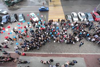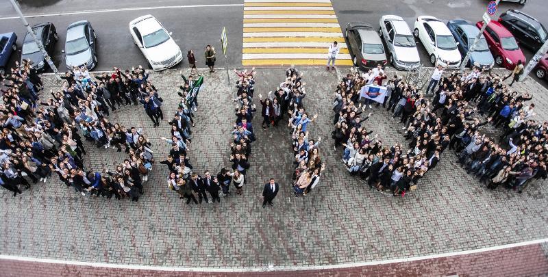 It is common knowledge that in 2018, Voronezh State University celebrates its 100th anniversary, and now the alma mater is starting to prepare for this important event. The students “wrote” the university’s history and took part in a mass flashmob. About 150 people stood in front of the university building, shaping the phrase “VSU 100”.