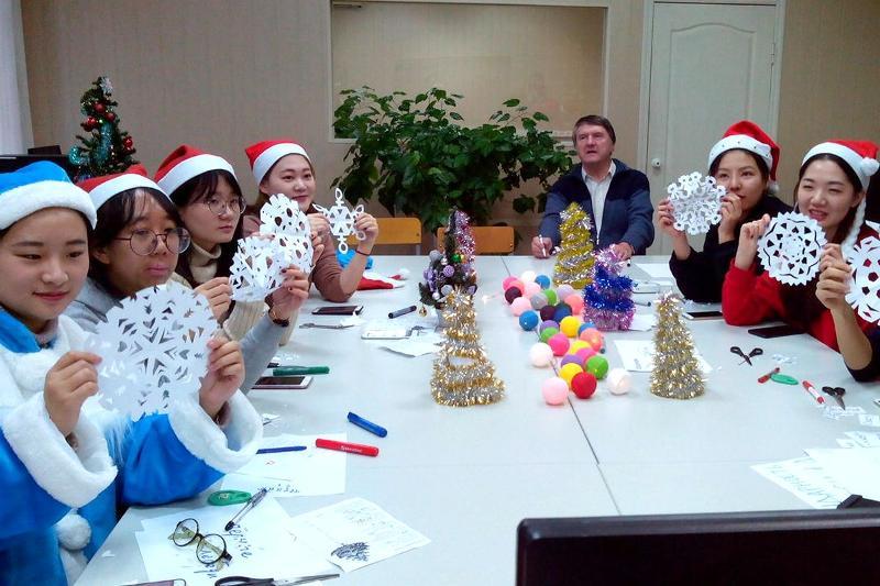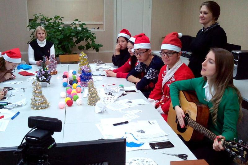 The quiz included several tasks dedicated to the New Year. Students had to draw pictures, do crosswords, answer questions, and make paper snowflakes. At the end, all the participants sang a traditional Russian New Year song about a Christmas tree “V lesu rodilas yolochka”.