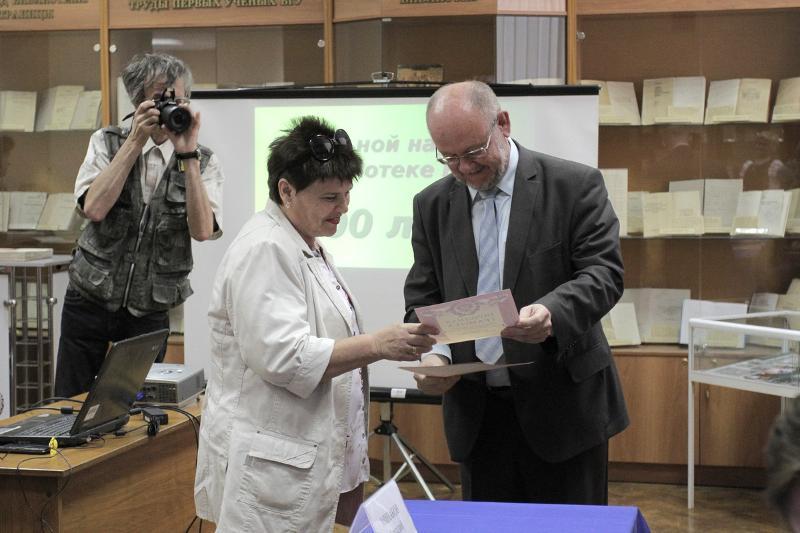 VSU Rector, Dmitry Endovitsky, the rector's councillor, Vladimir Listengarten, the editor in chief of the newspaper "Voronezh University", Yury Lebedev, and the director of VSU library, Arkady Minakov, congratulated the library staff with the anniversary and awarded them with certificates.