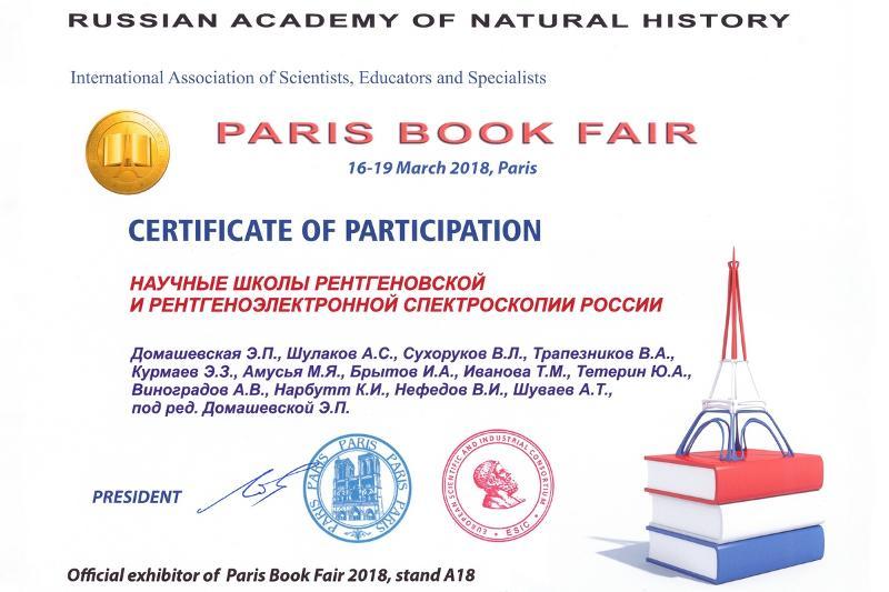 Two books by Evelina Domashevskaya were included in the special list of PARIS BOOK FAIR 2018. The first one is a monograph edited by professor Domashevskaya “Russian scientific schools specialising in X-ray and X-ray electro spectroscopy”. It was published by the VSU Publishing House in 2015.