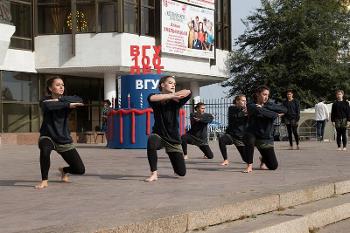 Students from the students’ sports club “Khitschnye Bobry” (Rapacious Beavers) organised a sport’s ground for all sport lovers. They invited the world champion in kick-boxing, Vadim Chasovskikh, and a martial arts club “Svyatoslav”, which held master-classes and demonstrated their fighting skills. Volunteers could join them and try their hand in martial arts.