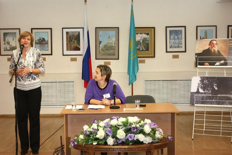 On 5 October, the Teacher's Day, the Centre of Russian Science and Culture in Astana held a festive event dedicated to the 190th anniversary of Leo Tolstoy. Teachers of Russian language and literature participated in the discussion “Leo Tolstoy and school – regional studies (Museum and school - integration prospects. Elective course as an education method for schools)”. The whole event was moderated by Tatiana Ternova and the discussion was coordinated by Anna Frolova.