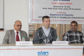 The course was initiated by the Faculty of Chemistry of NIT Kurukshetra within the framework of the government international programme of the Ministry of Human Resource Development “Global Initiative of Academic Networks – GIAN”. The coordinators of the course were Prof. Akhilesh Swarup and Prof. Chetti Prabhakar. The aim of the GIAN programme is to invite foreign researchers to teach in India, create favourable environment for their effective collaboration with Indian universities, and initiate joint research projects in order to boost mutual interaction and enhance the reforms in the sphere of science and technology in India.