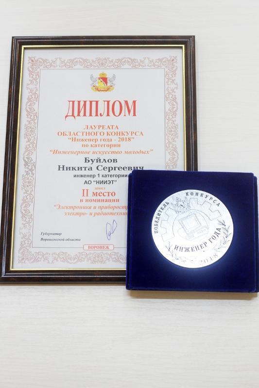 Nikita Builov, a postgraduate student from the Faculty of Physics of Voronezh State University, engineer at the experimental certification centre for integrated circuits and microwave devices “Research Institute of Electronics”, took second place in the regional contest “Engineer of the Year – 2018” in the nomination “Electronics and Engineering, Electrical and Radio Engineering”.