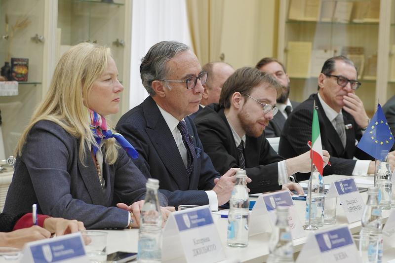 After the meeting with the university’s administration, the guests were invited to the conference hall of the main university building where Ambassador Extraordinary and Plenipotentiary of the Italian Republic to the Russian Federation, Pasquale C. Terracciano, gave a public lecture for students “Bilateral Relations between Russia and Italy”.