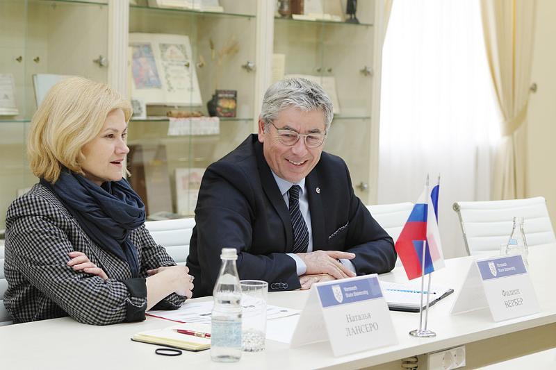 A working meeting between the Rector of the university, Dmitry Endovitsky, and the President of the international commission MEDEF, Philip Weber, was held at the university. The participants discussed the international academic programme ЕМВА jointly implemented by VSU and ISC Paris Business School, organisational issues regarding the diploma award ceremony for the second graduates of the programme, and the prospects of establishing a new research centre in the Voronezh region.