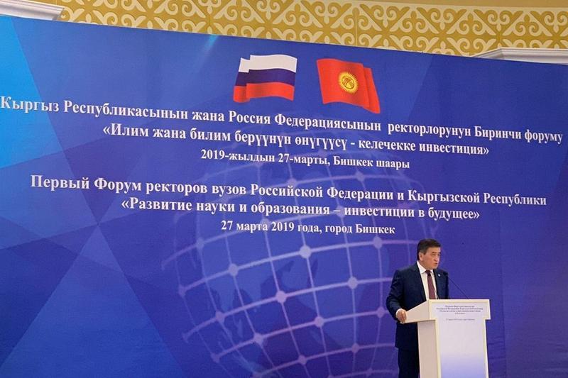 The participants and the guests of the forum, were welcomed by the President of Kyrgyz Republic, Sooronbay Jeenbekov, the Minister of Science and Higher Education of the Russian Federation, Mikhail Kotukov, and the Minister of Education and Science of Kyrgyz Republic, Gulmira Kudaiberdieva. In his welcoming speech the President of Kyrgyz Republic said that Kyrgyz universities are interested in mutual integration and cooperation with Russian universities and thanked Russian rectors for their participation in the forum.