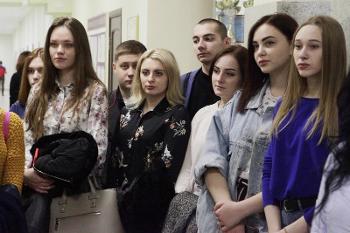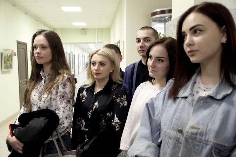 Many participants of the opening ceremony, students from the Faculty of Chemistry and the Faculty of Pharmaceutics did not leave after the event, they stayed to watch the pictures, share impressions and take photos of each other in front of the pictures they liked best. Their favourite picture was “Juicy summer” that takes the viewer to the time of student holidays, the high summer, when the shades of grey characteristic of the spring are overtaken by the exotic brightness of a summer picnic.