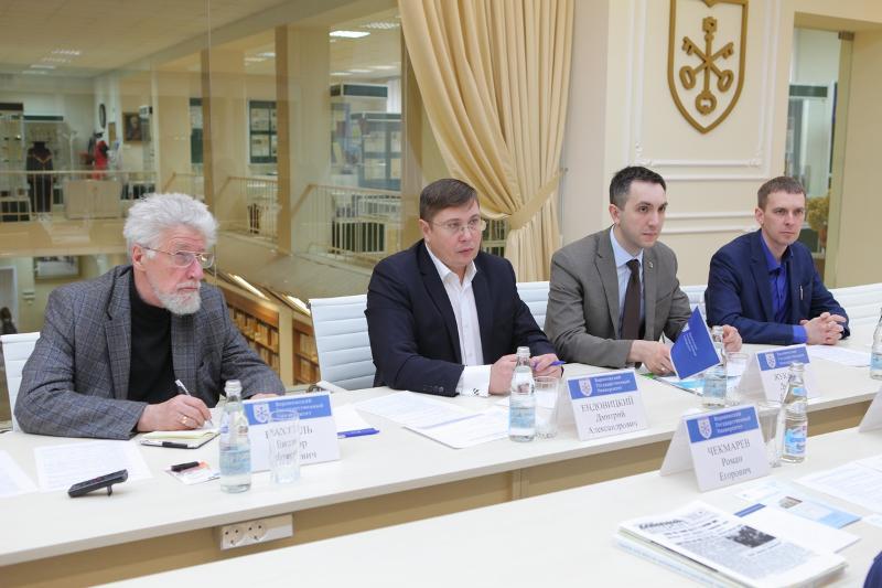 On 5 April, a working meeting was held between the Rector of the university, Dmitry Endovitsky, the Head of the VSU Department of Innovations and Enterprise Management, Dmitry Zhukalin, Associate Professor of the Department of Nuclear Physics, Viktor Vakhtel, and a delegation of the Novovoronezh branch of the Rosatom Emergency Centre, represented by the Director, Roman Chekmaryev, and the Senior Spectroscomy Engineer, Sergey Apasov.