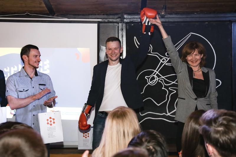 Among the competitors of the event were five slammers representing Krasnoyarsk universities and of the Siberian Branch of Russian Academy of Sciences. They had five minutes to tell the audience about their research in a simple and entertaining way. The winner, who was chosen by the volume and duration of the audience applause, was announced by Elena Sanarova, the Managing Director for Corporate Communications and Public Relations at “UK ROSNANO” and the Managing Director for External Communications of the Fund for Infrastructure and Educational Programmes. The best slammer was a senior lecturer from the Institute of Mathematics and Fundamental Informatics of Siberian Federal University, Mikhail Rybakov. According to the audience, he was the best at explaining mathematical methods used at the analysis of vital life processes. Sergei Philippov, the Head of the popularisation division of the Fund for Infrastructure and Educational Programmes of ROSNANO awarded the slammer with the sought after prize, the gloves, which are the symbol of the victory.