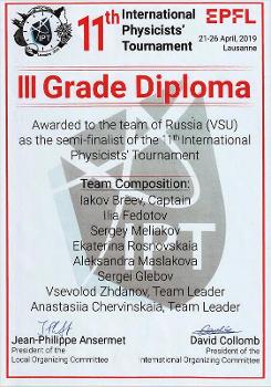 Between 21 and 26 April, the International Student Tournament of Physicists was held in the Federal Institute of Technology in Lausanne (Switzerland). 19 strongest teams from 16 countries took part in the event, including the USA, Australia, India, and Sweden.