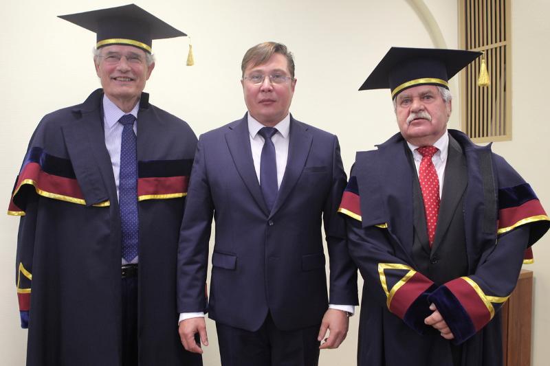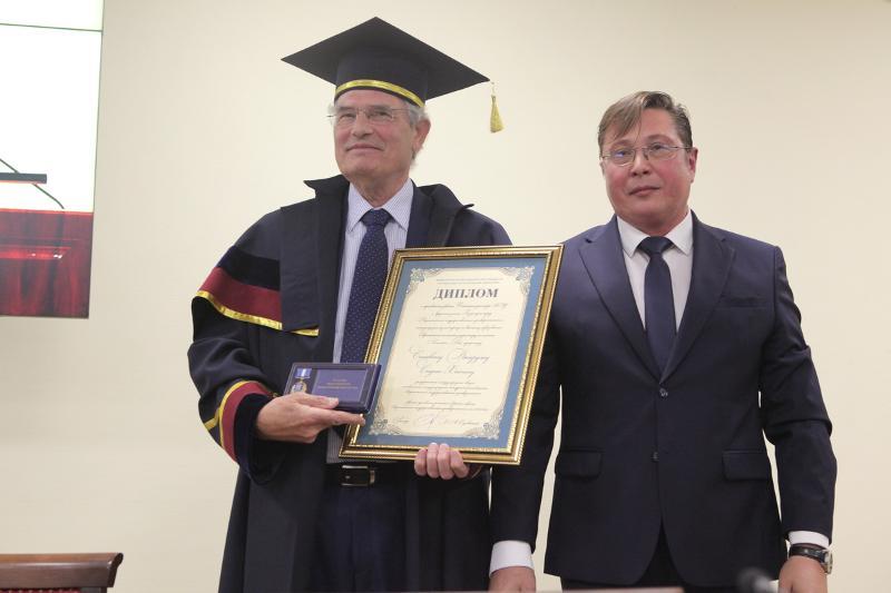 On 20 September, Stephen Hagen, international higher education expert of the European Commission and the Director of Semantika Ltd, and Klaus-Dieter Heinze, the Head of the chemical/industrial technopark Dow Olefinverbund GmbH Leiter ValuePark (Germany), initiator of the German Alumni Association, were awarded with the gown and diploma of Doctor Honoris Causa of Voronezh State University.