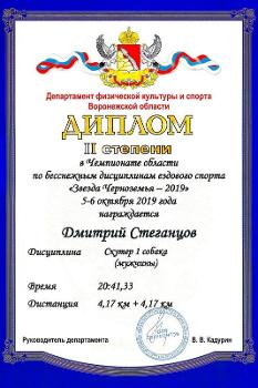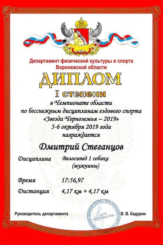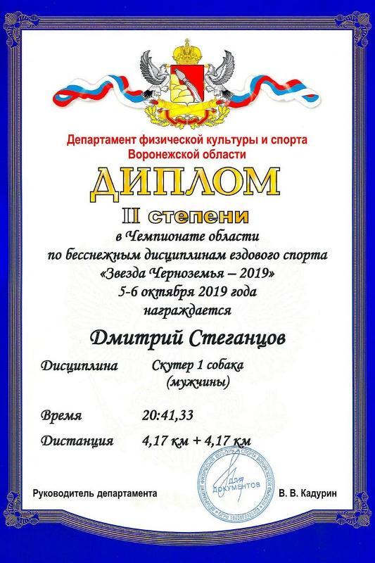 He won the fastest and the most dynamic discipline “Bike 1 dog men” and became the champion of the Voronezh region. He also came second in the discipline “Scooter 1 dog men” in the overall competition and took first place in the competition between northern sledding breeds. He was second in the discipline “Bike 2 dogs”. What is more, he took part in a medley relay that consisted of three laps: canicross (running with a dog), scooter, and a bicycle.