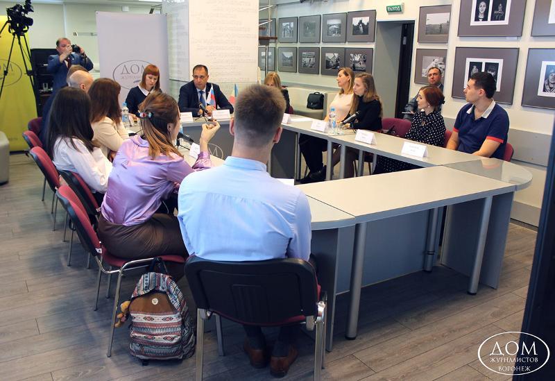 Maria Andreeva, head of the Guild of Inter-Ethnic Journalism and staff member of the Faculty of Journalism of VSU, talked about the guild’s projects and its work aimed at promoting the idea of inter-ethnic relations in mass media. One of the key projects is the School of Inter-Ethnic Journalism, which operates all over the country, including in Voronezh. In Voronezh, the school is run jointly by the Guild of Inter-Ethnic Journalism and the Faculty of Journalism of VSU, and has been implemented three times already. The graduates of the school from various years also came to the meeting.