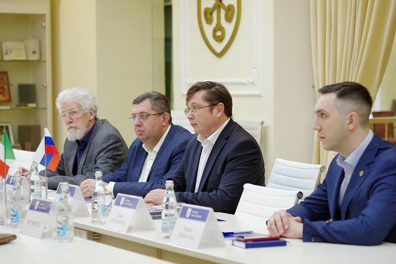 On 5 November, a meeting between the assistant consular of the Honorary Consulate in Voronezh, Daniele Carmagnini, the VSU Rector, Dmitry Endovitsky, the Dean of the Faculty of Physics, Oleg Ovchinnikov, Associate Professor of the Department of Nuclear Physics, Viktor Vakhtel, and the Head of the Department of Innovations and Enterprise, Dmitry Zhukalin, took place in the White Hall of Voronezh State University.