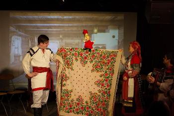 It included original ethnographical materials, texts, songs, and fragments of ceremonies which had been recorded during folklore expeditions. The programme of the concert consisted of various genres which were brought together and formed a whole performance: Russian folklore theatre, songs, puppet shows, reenactment of folk rites, and interaction with the audience characteristic of a traditional youth party.