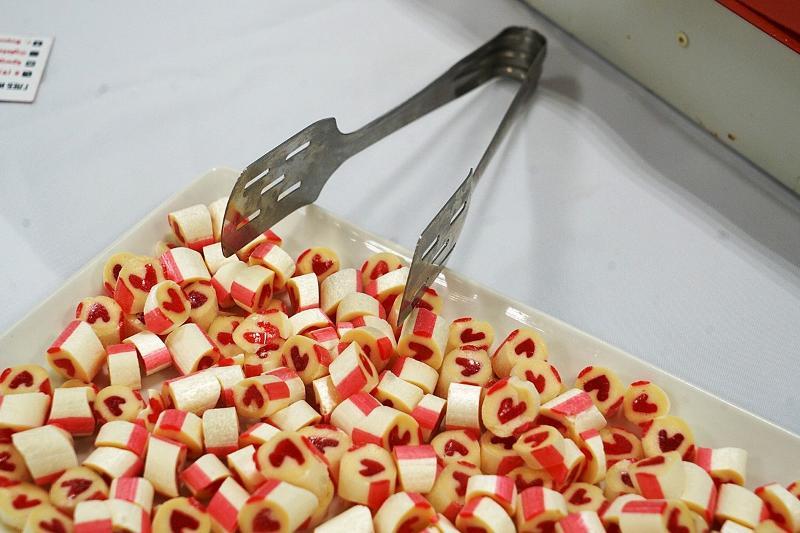On 4 March, representatives of the manufacturer BONBON and students cooked 5 kg of caramel. Carameliers Gleb and Natalia made sweets with the help of special equipment which they had brought to the university canteen. Students used strawberry and coco mass with a shade of lemon to make eight- and lip-shaped lolly-pops.