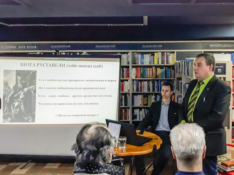On 19 March, Vladimir Gusakov and Sergey Churikov, Associate Professors at the Faculty of Philology, gave a joint lecture on Russian and Georgian cultural relations. The event took place in the “Amital” bookstore as part of the project called “A Large University for a Large City”. The title of their talk was borrowed from a poem by Georgian poet Titsian Tabidze dedicated to two great representatives of the Georgian and Russian nations, Pushkin and Rustaveli: “Two genius will be joined in a powerful fusion”.