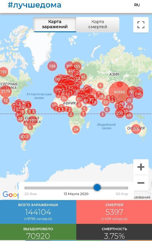 – First of all, this map was designed for ordinary people, to show how dangerous the virus can be. People should take all necessary precautions. Recently we added a new function for better visualisation of the COVID-19 danger to global population, it is a switch to show a "maps of deaths" instead of “cases of infection”, revealing the growth of deaths around the world. We believe this information should be shared. Now the website also has a test which also provides tips, and people can learn more about the new coronavirus and protection means through it.