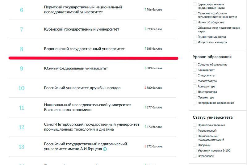 The Interfax Information Agency published the National University Rating. Voronezh State University ranked 24th among 337 Russian universities.