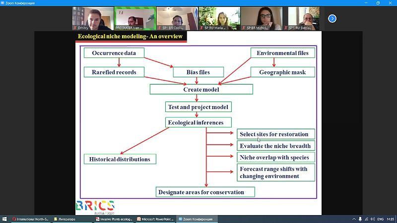 Dmitry Vladimirov gave a presentation “Invasive plants: migration peculiarities and consequences of naturalisation”. He told the audience about peculiarities of distribution of alien plant species, outlined the areas of their concentration and migration corridors. The Voronezh researcher shared his experience of implementing international projects aimed at studying plant intervention in cooperation with colleagues from the Sichuan Provincial Natural Resources Research Institute (China) and expressed his readiness to cooperate with oversea colleagues in this area.