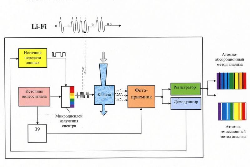 The invention will prompt the mass production of the new-generation optical spectrum analysers which allow conducting a qualitative analysis of matter and, if necessary, sending its results in real-time mode via Li-Fi high-speed wireless communication technology.