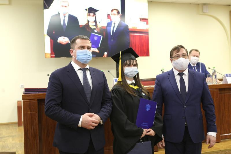 On 29 January, master’s students of the programme “Health Care Accounting, Control, and Analysis” were awarded with their diplomas in the conference hall of the main building of Voronezh State University. VSU Rector, Dmitry Endovitsky, the Head of Voronezh Health Department, Alexander Schukin, and the Deputy Head of the Department of Health of the Voronezh Region, Andrey Churikov, congratulated the graduates.