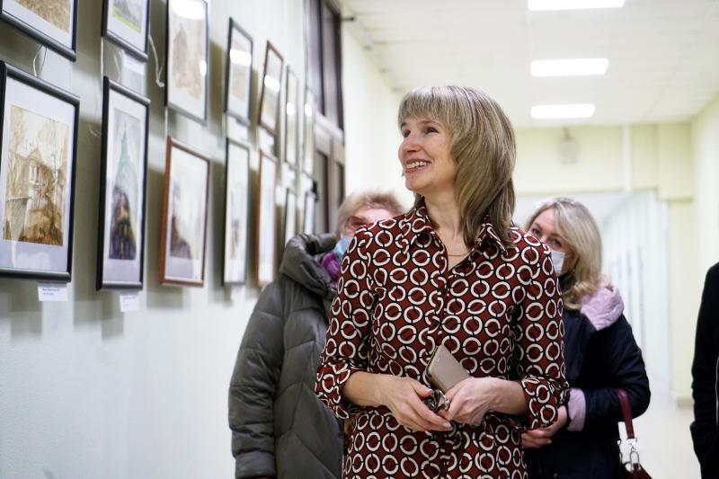 On 17 March, the exhibition "Architectural Walks” by Nelly Frolova, a lecturer of the programme "Humanitarian Sciences and Arts” at the Faculty of Philology of Voronezh State University, opened in the Rector's Gallery of VSU. The exhibition presented 24 paintings. They included sketches of both landmarks of Voronezh, Moscow, St. Petersburg, and Ryazan and quiet and unpretentious nooks of different towns and cities.