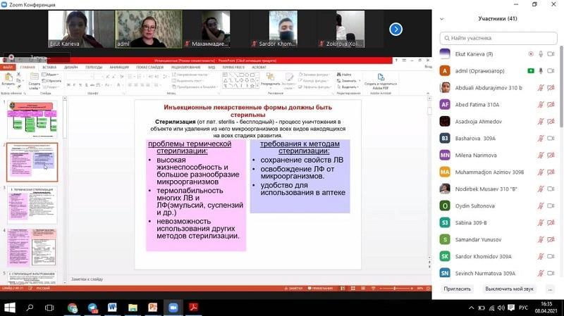 Between 8 and 22 April, Yulia Polkovnikova, Associate Professor at the Department of Pharmaceutical Chemistry and Pharmaceutical Engineering of VSU conducted lectures and practical classes dedicated to pharmaceutical engineering for the students from the Department of Pharmaceutics of Tashkent Pharmaceutical Institute as part of the contract between VSU and Tashkent Pharmaceutical Institute.