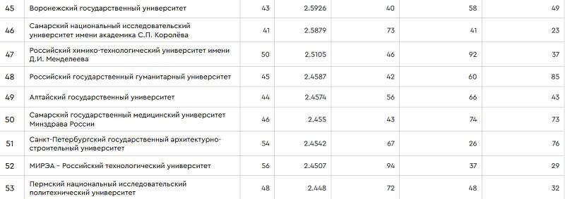 On 9 June, the rating agency RAEX published the tenth anniversary ranking of the 100 best Russian universities. In 2021, VSU took 45th place in this ranking.
