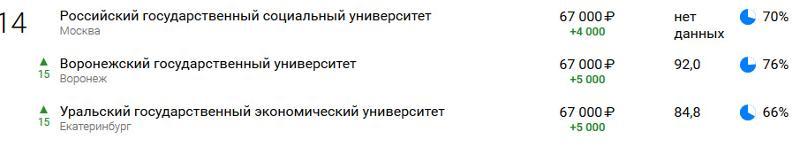 This year VSU improved its position and moved from 15th to 14th place with the graduates’ salary being 67 thousand roubles. Over the year the pay rate of the graduates increased by 5,000 roubles.