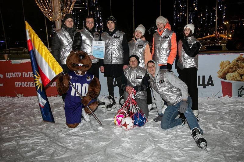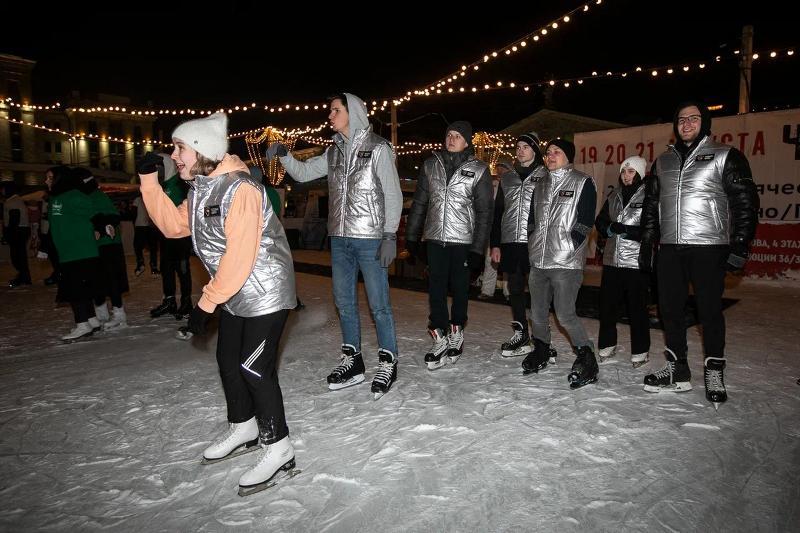 Daria Berdnikova, a first-year student of the college of Voronezh State Sports Academy and winner of the regional figure skating competitions, gave a performance, and the Ekoniva-Bobrov hockey team held a workshop for the students. Ice relay races among university teams began right after that. Nine teams were divided into groups of three by drawing lots and identified the strongest participant in each team. During the relay races, students had to zigzag between the cones while staying ahead of their competitors, reach their teams using figure skating elements called “flashlight” and “swallow”, and lead the puck on the ice for 20 metres without losing it. The dancing competition was the last part of the event. All teams joined into a big circle and skated on the ice.