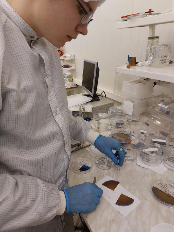 Evgeny Kersnovsky’s team designed and tested a solar panel. The project was successfully defended at the end of the school programme. Among the results of Evgeny’s team is a microphotograph of a silicon wafer textured as silicon columns about 200–500 nanometres in diameter. The textured surface reduces the reflection coefficient of the silicon wafer and increases the efficiency of the solar cell.
