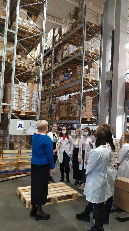 On 7, 8, and 12 April, SVE students of the Faculty of Pharmaceutics at VSU visited the Voronezh branch of AO Research and Production Company Katren. The participants were accompanied by warehouse director Natalia Lukina. They were told about the organisation of the medicines distribution process, about warehouse areas, and changes in the company’s work as a result of the introduction of the medicines traffic monitoring system. Natalia also showed the students how the automated warehouse department generates and assembles orders for the Apteka.ru service, and how a radio terminal works when the orders are handled manually.
