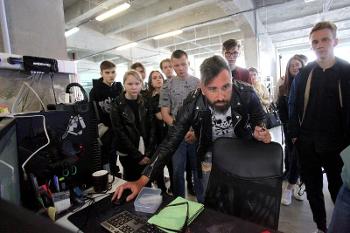 The first stop on the route was DSR. In the company’s office, students learned how engineers deal with the Internet of Things: about IoT Gateways, devices, cloud services, and microcontrollers. They also learned about the full cycle of creating software: from development to testing on real devices. They had a short coffee break in the best traditions of student lunches: fruit-drinks, buns, and sausage rolls.