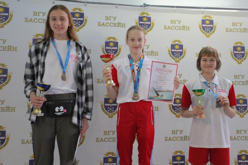 During the competition, the participants competed for 42 sets of original medals designed by a sports design company. The medals depict the Kitten from Lizyukova Street swimming in the Voronezh reservoir. As a result of their performance, the best swimmers who received most points in accordance with the International Swimming Federation FINA system were awarded with VSU trophies.
