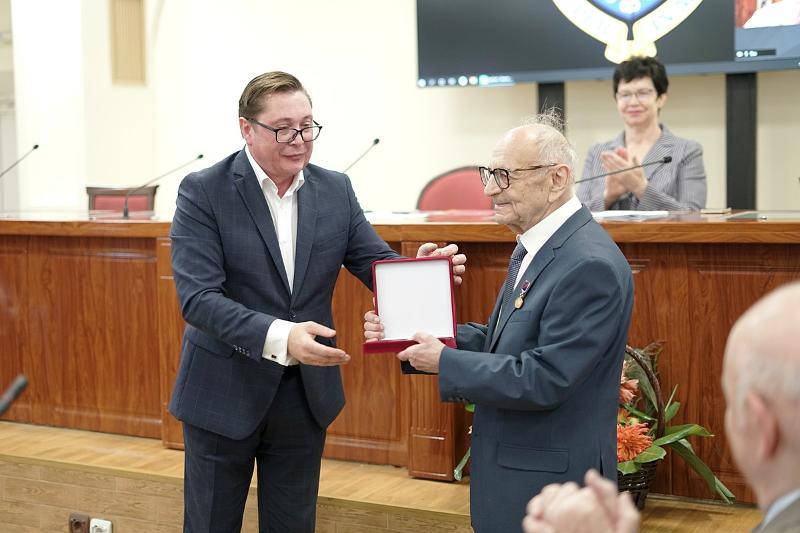 On 26 September, Vladimir Listengarten received an award from the governor of the Voronezh Region. The badge of honour “For dedicated work and professionalism” was awarded to him by VSU Rector Dmitry Endovitsky. The award ceremony was dedicated to the anniversary of this legendary employee of VSU.